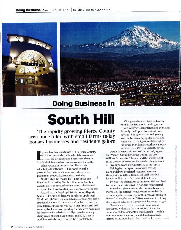 If you're familiar with South Hill in Pierce County, you know the hustle and bustle of this commercial hub; the string of retail businesses along the South Meridian corridor; and, of course, the traffic.